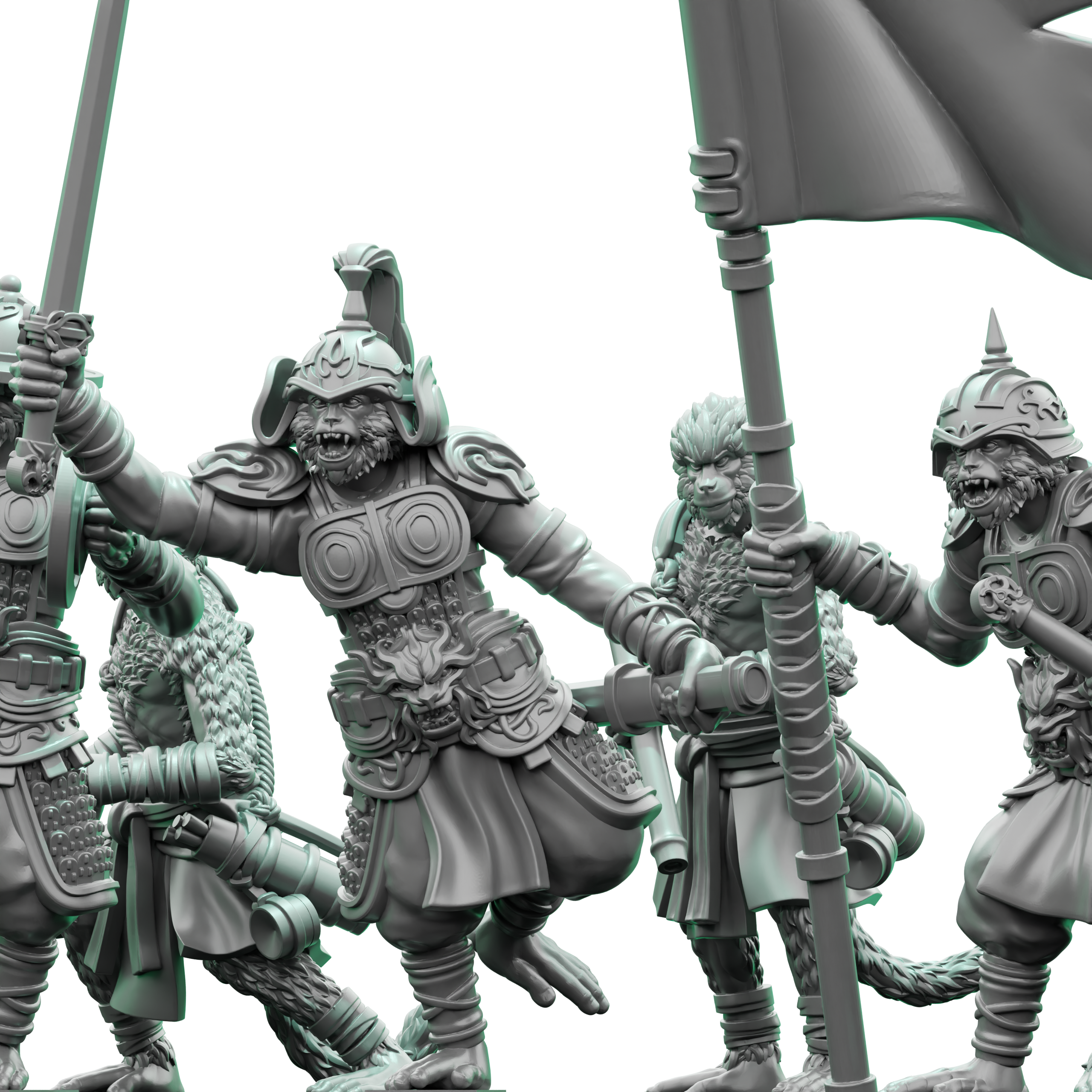 Pièces imprimées avec grande précision et traitées avec beaucoup de soin. Finesse de couche ultra fine de 30μm sur imprimante 12k dernière génération. Utilisation d’une résine ABS-Like restituant extrêmement bien les détails en plus d’être plus résistante que de la résine standard. Post-traitement précis, élaboré et efficace, vos figurines sont prêtes à être peintes !